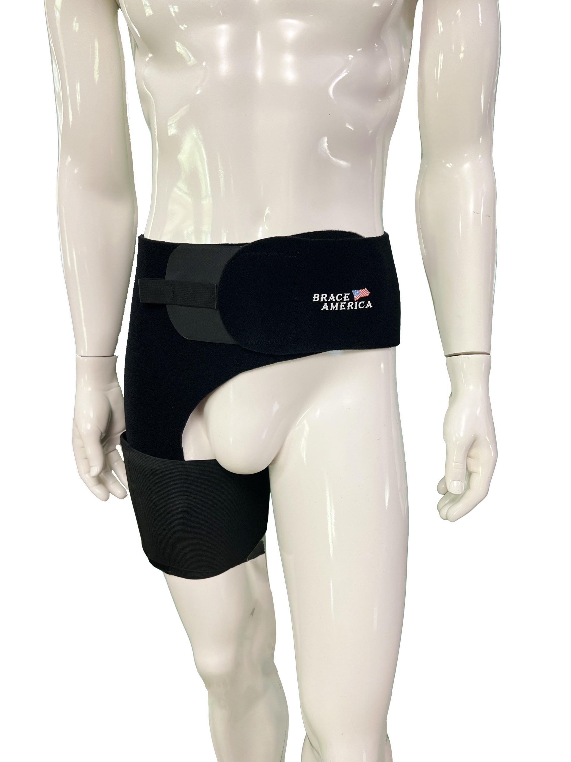 G100 was designed with the Sports Medicine professional in mind. No longer is a figure “8” hip spica needed with an ace wrap. The G100 has the durability and strength to support athletes or active non-athletes at the waist and hip when trying to support the hip flexors, quads, hamstrings, and groin musculature. The waistband as well as the two closures in the thigh region make this an excellent supportive product before or after an injury and rehab.